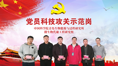 为充分发挥共产党员在科研工作中攻坚克难的先锋模范作用,推进党建工作与科研创新工作深度融合,青岛能源所微生物代谢工程研究组近日设立了“党员科技攻关示范岗”并举行了授牌仪式,由研究组组长吕雪峰研究员向入选的各位党员授牌。