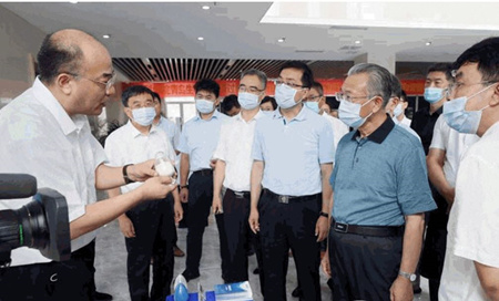 刘家义一行听取了张凯研究员有关螺旋藻生产甘油葡糖苷的技术和微生物发酵制备反式乌头酸技术、徐健研究员有关临床单细胞拉曼药敏性快检仪成果的汇报,深入了解了科研产品与实验装置。