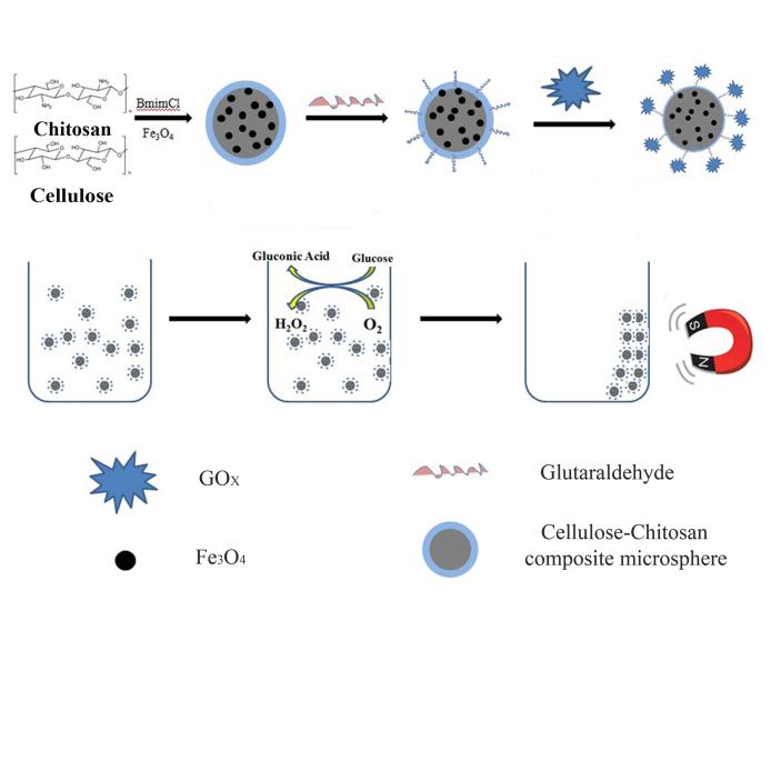 图 2 纤维素微球用于葡萄糖氧化酶的固定化及重复利用过程示意图